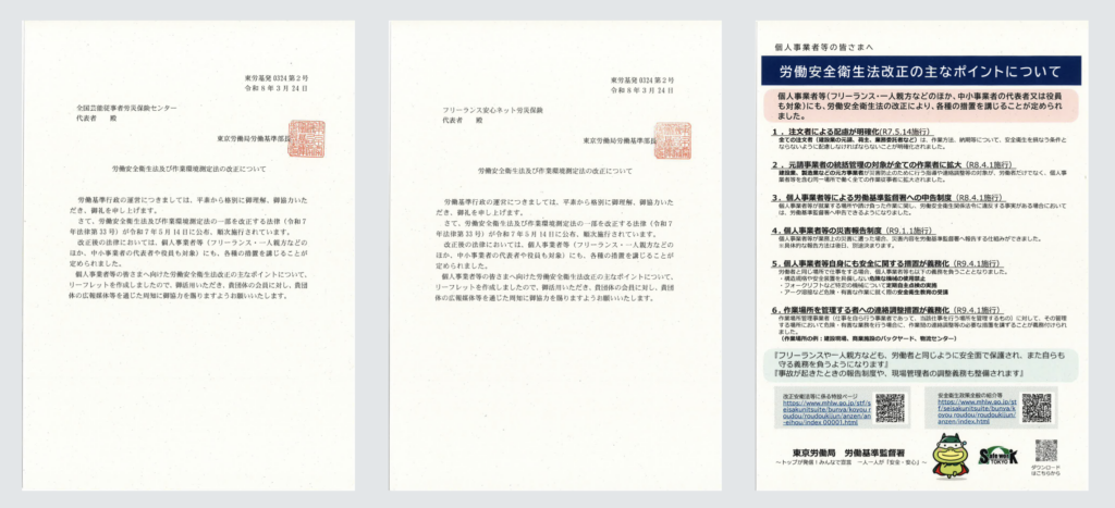 【3/24東京労働局】労働安全衛生法改正について(個人事業者等向け)の通知が届きました