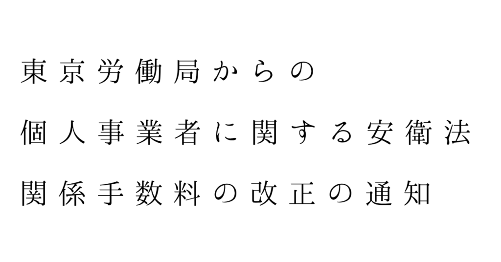 労働安全衛生法施行令及び労働安全衛生法関係手数料の一部を改正する政令等(個人事業者等関係)、の施行について