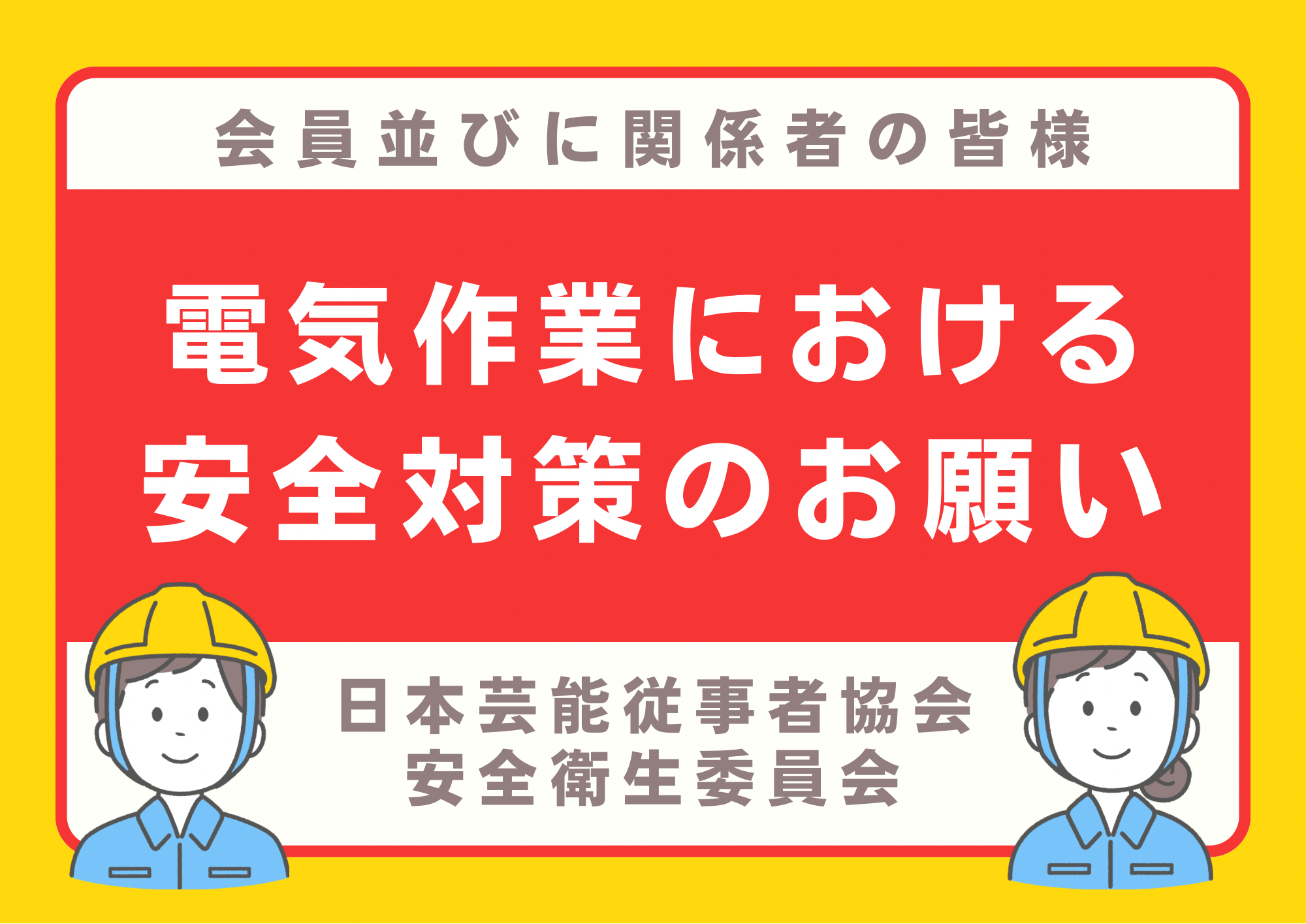 電気作業における芸能従事者の安全対策・災害防止へのご協力のお願い 会員ならびに関係各位様 近年、LED機器や大…